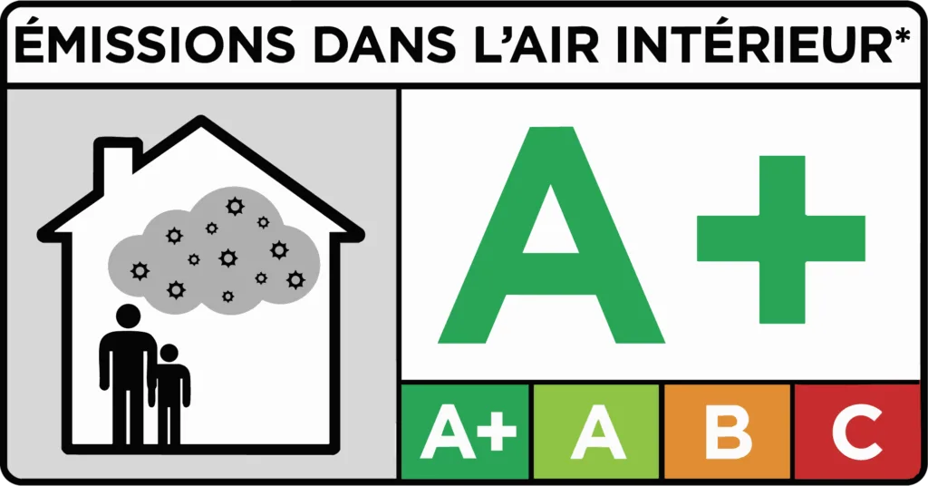Il programma francese di certificazione “Émissions dans l’air intérieur” (certificazione A+) assegna ai prodotti un’etichetta sulla base dei test sulle emissioni di composti organici volatili (COV). L’etichetta riporta informazioni semplici e visibili sulle caratteristiche degli inquinanti volatili del prodotto dopo la sua installazione in uno spazio chiuso.