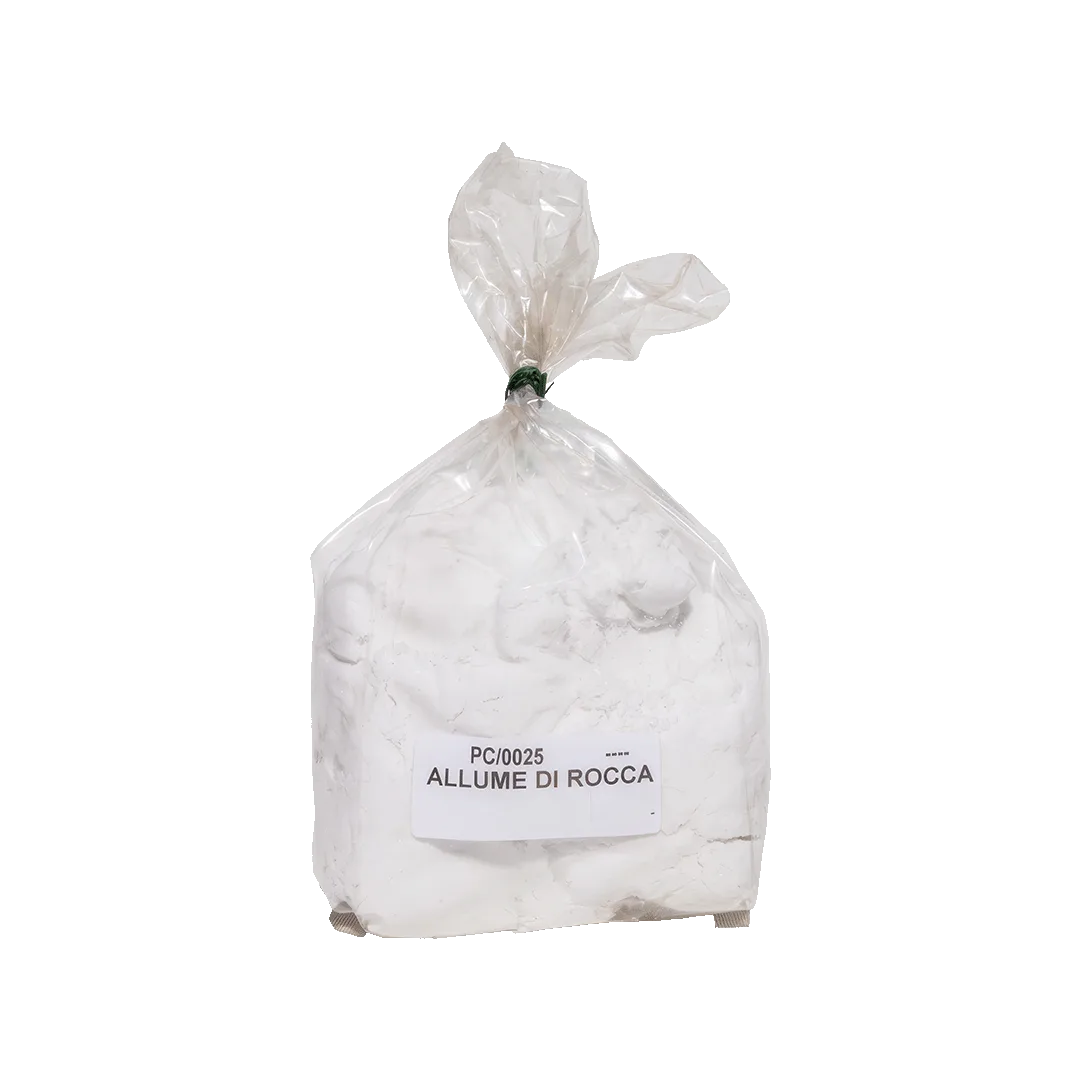 L’allume di rocca è un sale minerale cristallino (solfato doppio di alluminio e potassio) tradizionalmente utilizzato in ambito artistico, artigianale e conservativo per le sue proprietà astringenti, indurenti e mordenzanti.