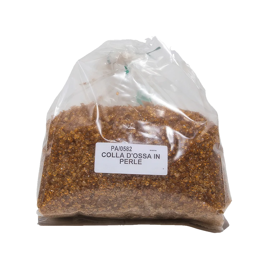 Colla naturale di origine animale ottenuta dalla lavorazione delle ossa e presentata in perle per una preparazione pratica e un dosaggio preciso.