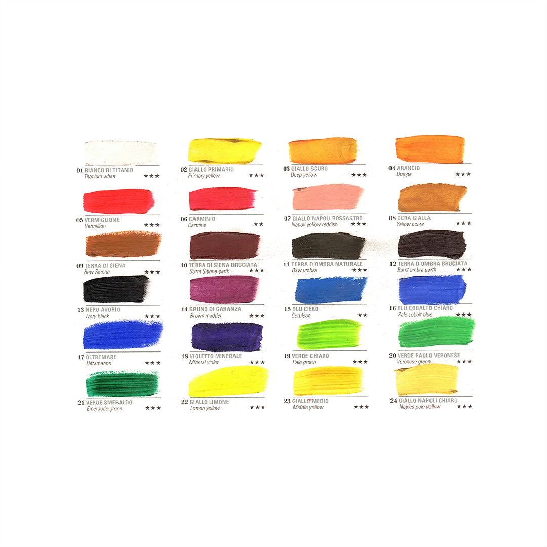 Colori brillanti e coprenti a base acqua, ideali per artisti, studenti e hobbisti. Asciugatura rapida, ottima adesione e versatilità su molteplici superfici.