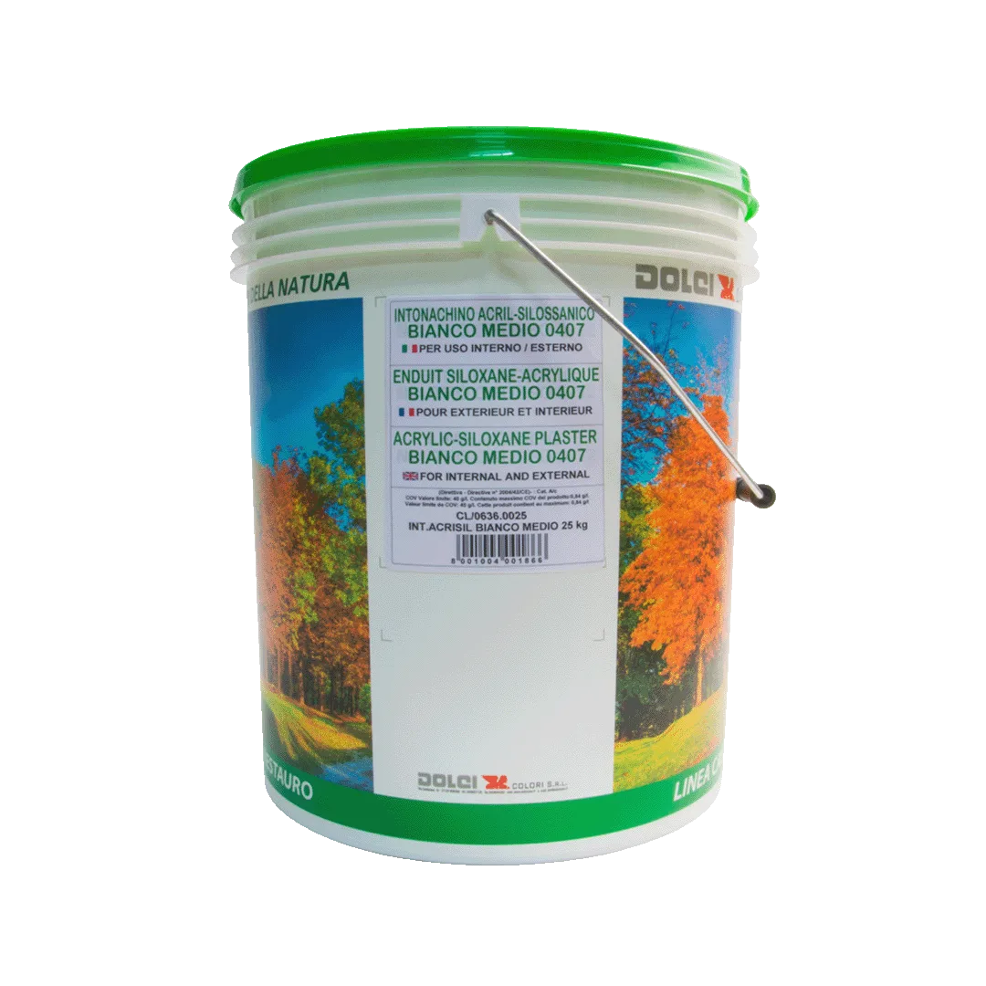L’intonachino acrilico è un rivestimento decorativo a base di resine acriliche silossaniche in dispersione acquosa, ideale per facciate e pareti interne, in particolare per finiture di cappotti. Garantisce ottima adesione, resistenza agli agenti atmosferici e una finitura uniforme e traspirante. Perfetto per superfici nuove o da rinnovare.