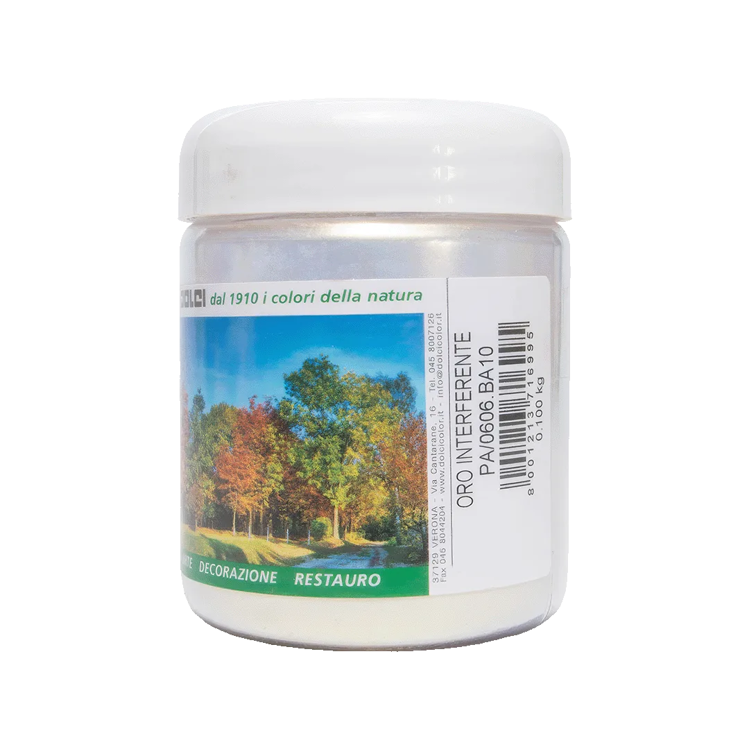 Il pigmento è semitrasparente, riflettente e non tossico, facilmente combinabile con altri pigmenti come terre, ossidi e lacche, permettendo la creazione di tonalità personalizzate e finiture decorative particolari.