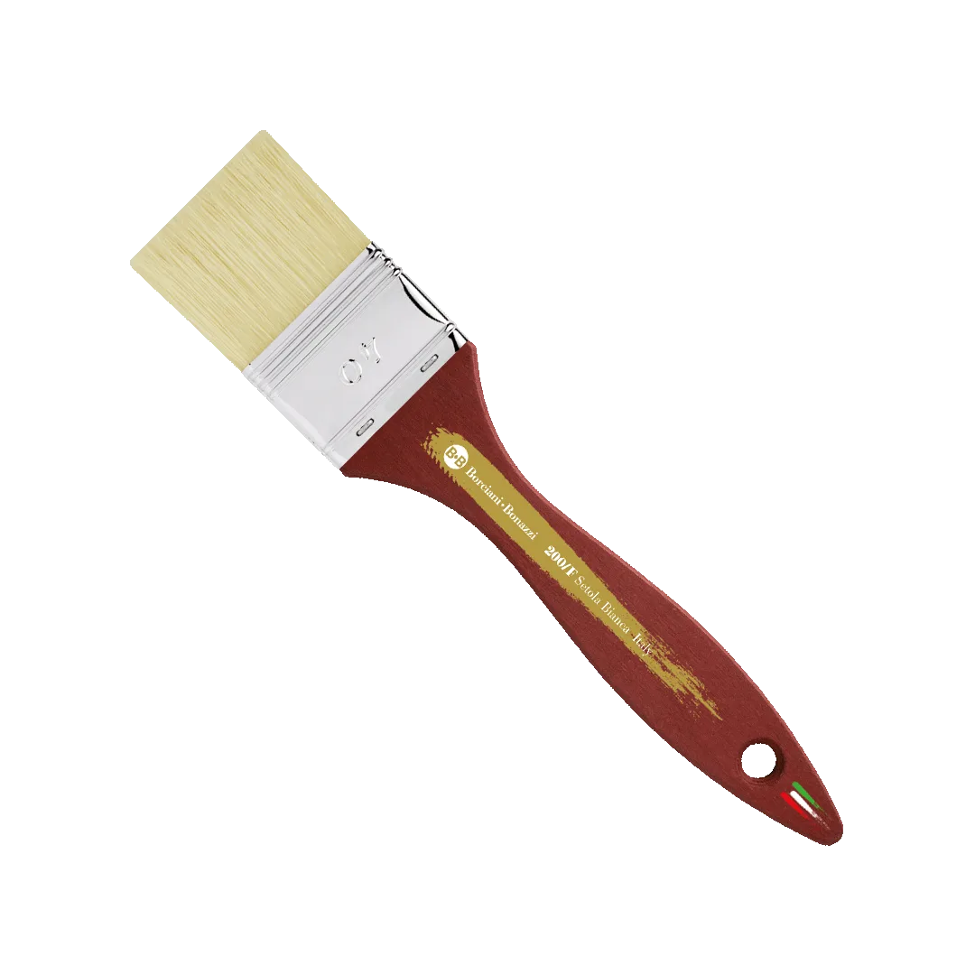 La Pennellessa Semplice Serie 200/F è realizzata in setola bianca naturale, resistente ed elastica, adatta a tecniche che richiedono buona capacità di carico del colore e stesure uniformi. Garantisce un’applicazione decisa e regolare, ideale per lavori su superfici medio-grandi.