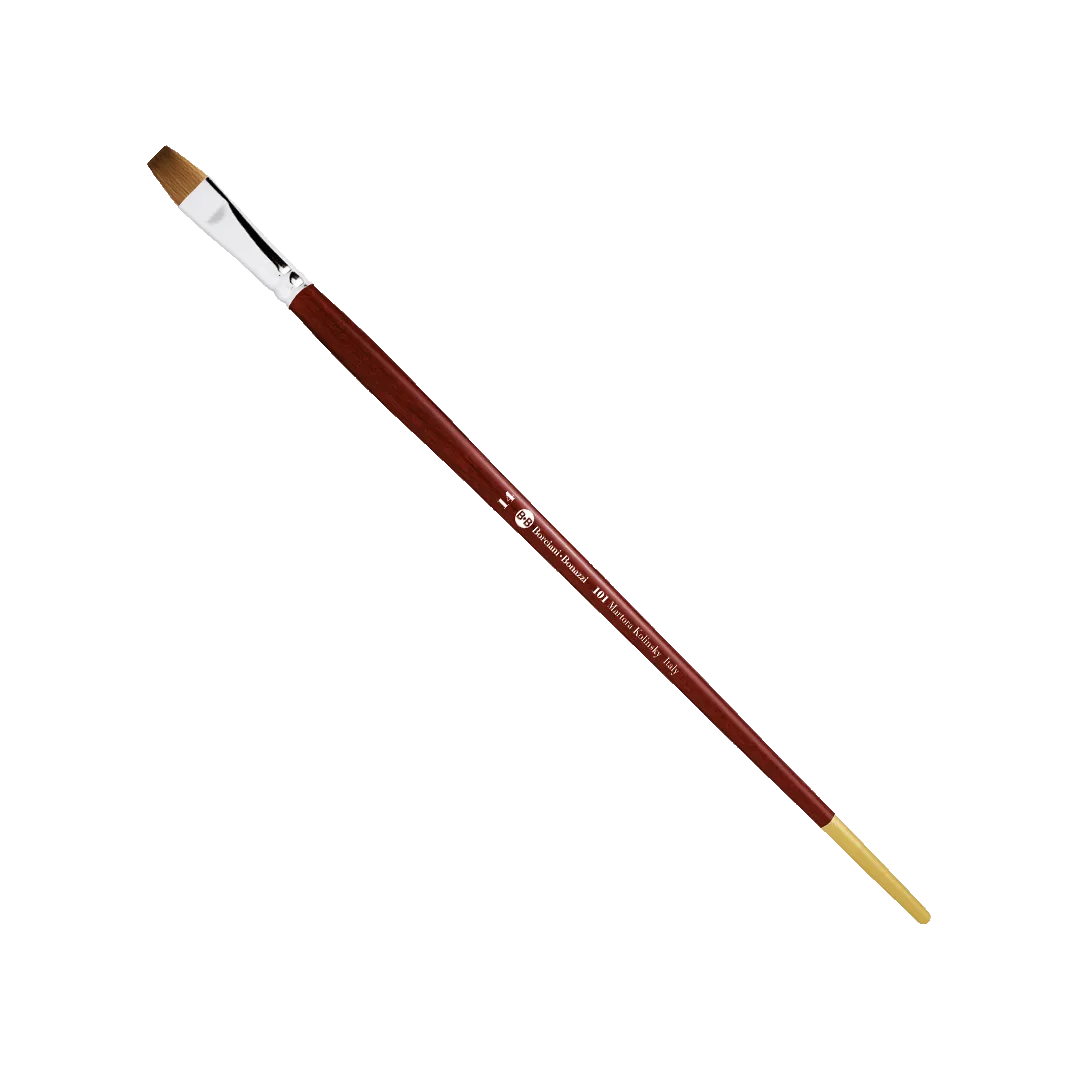 Il Pennello Piatto Serie 101 è realizzato in pregiato pelo di martora Kolinsky naturale, materiale di altissima qualità che garantisce eccezionale elasticità, capacità di carico del colore e rilascio controllato. Le fibre mantengono una forma stabile, assicurando una stesura uniforme e precisa.