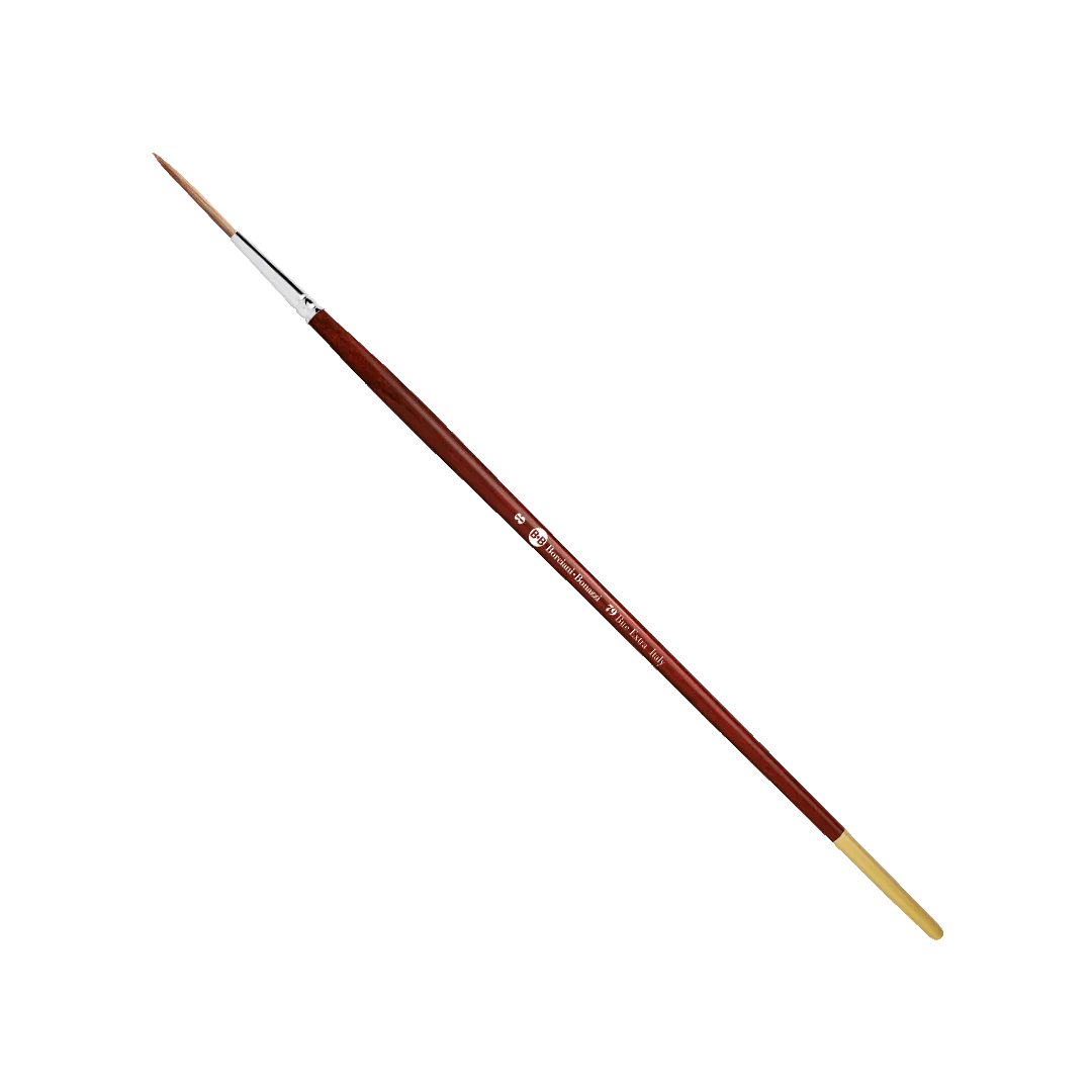 Il Pennello Tondo per Scrivere Serie 79 è realizzato in pelo di bue naturale, fibra morbida ed elastica che garantisce ottima capacità di carico del colore e rilascio controllato, caratteristiche fondamentali per lavori di precisione.
