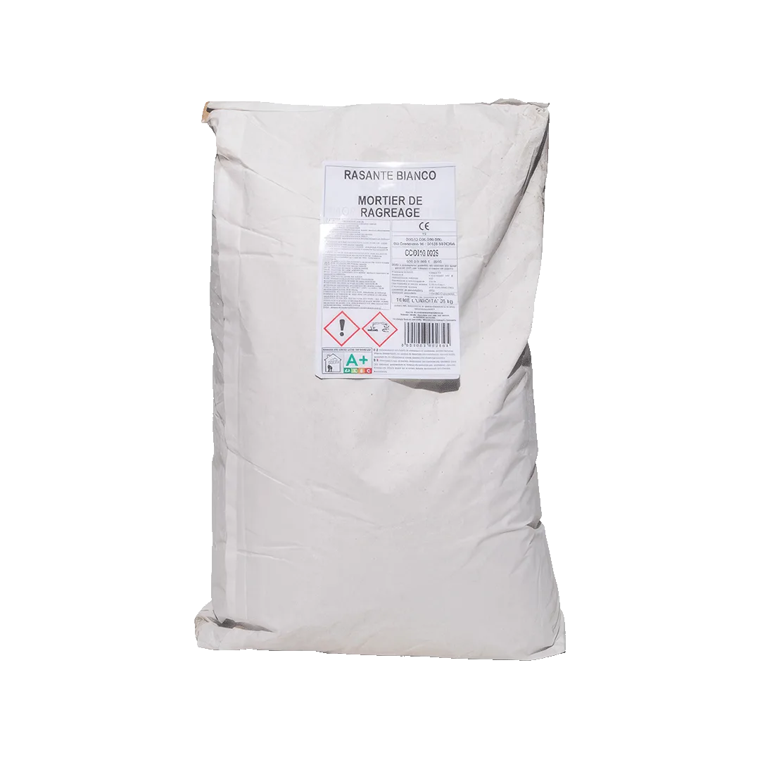 Composizione: cemento bianco, calce aerea idrata, carbonato di calcio, copolimeri vinilici e fibre.