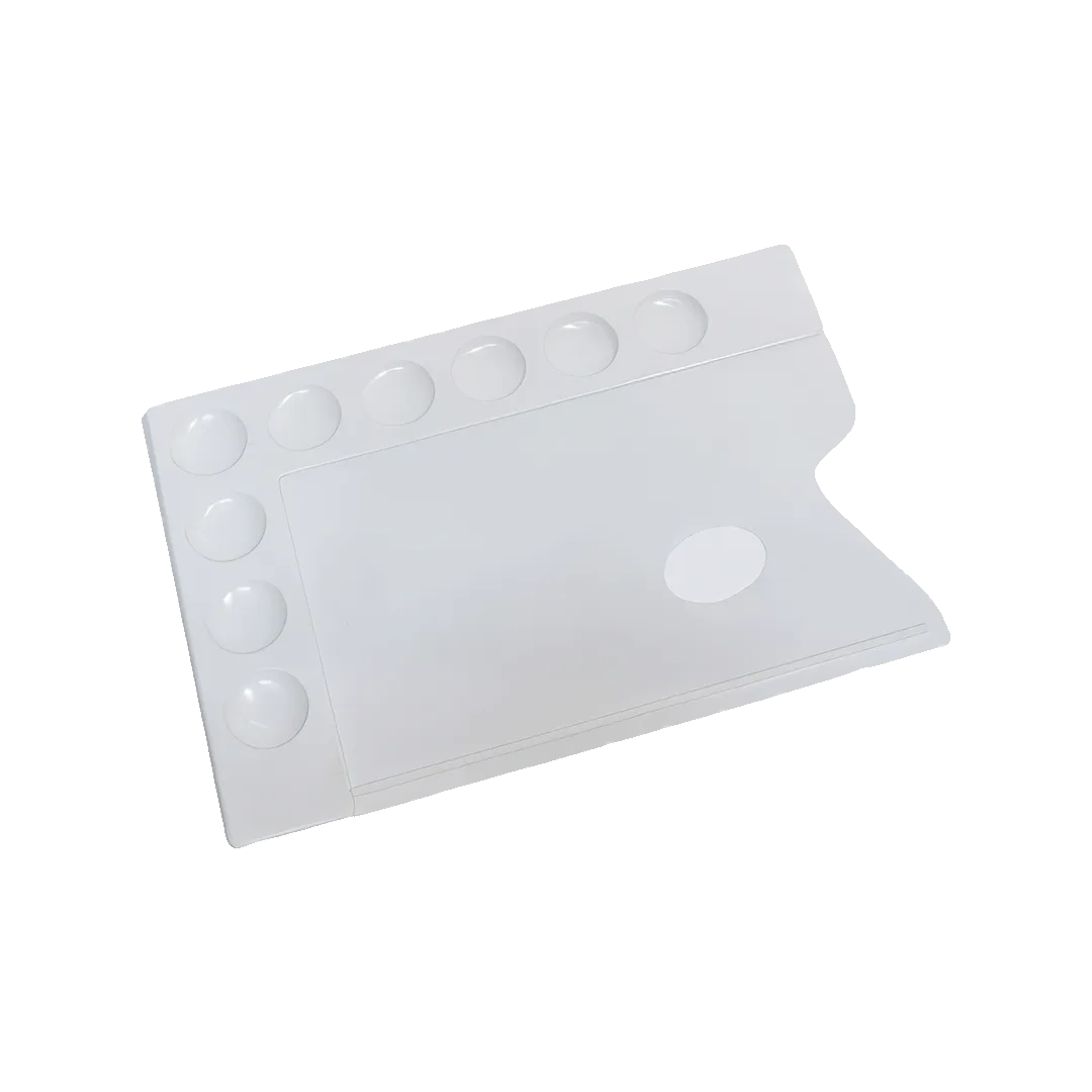 Le Tavolozze in Plastica sono strumenti pratici e durevoli, pensati per artisti, restauratori e hobbisti. Realizzate in plastica resistente, permettono di miscelare e stendere colori a olio, acrilici o acquerelli in modo uniforme, senza assorbire i pigmenti.
