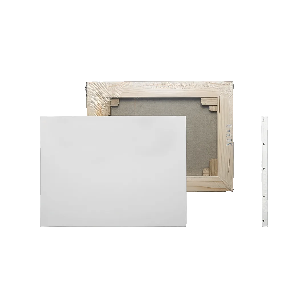 Supporto per pittura costituito da un robusto telaio in legno, progettato per garantire stabilità e resistenza. La struttura a listelli consente un’ottima tensione della tela e facilita l’applicazione dei colori senza deformazioni.