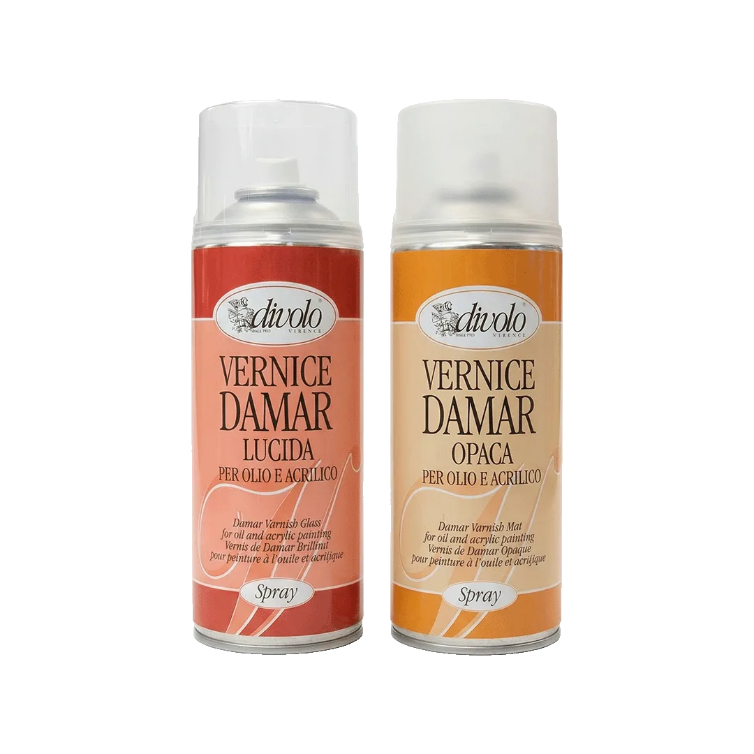 Vernice finale a base di resina damar naturale, disponibile in finitura lucida o opaca, ideale per la protezione di dipinti a olio. Pratica da applicare, uniforma la superficie e valorizza la profondità dei colori.