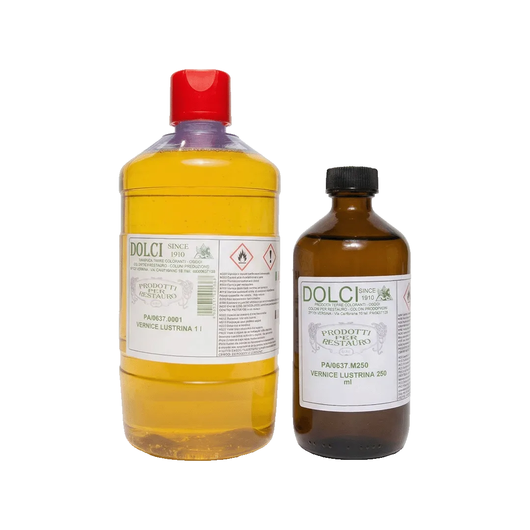 Formulata con resina chetonica, alcool e plastificata con olio di ricino, può essere applicata a spruzzo con aerografo o a pennello. Per la diluizione si utilizza alcool anidro, permettendo una stesura uniforme e controllata. La vernice lustrina è ideale per restauratori e doratori, che desiderano protezione e valorizzazione estetica delle superfici decorate senza alterarne colore o lucentezza.